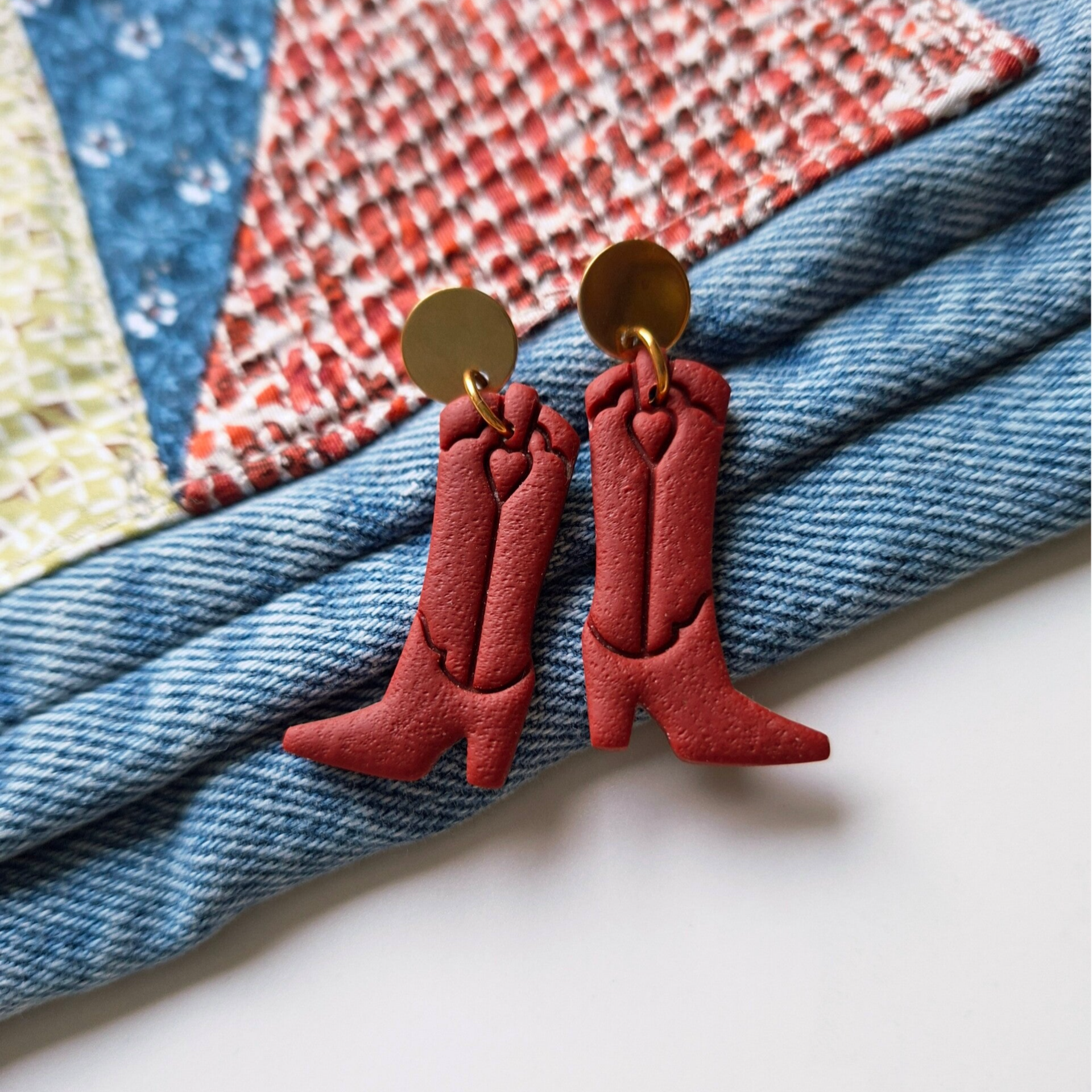 Chique & stoer? Dat komt allebei samen in oorbel Charlene! Een prachtige Bordeaux rood (of Merlot) en een subtiel laarsje. Yihaa!!