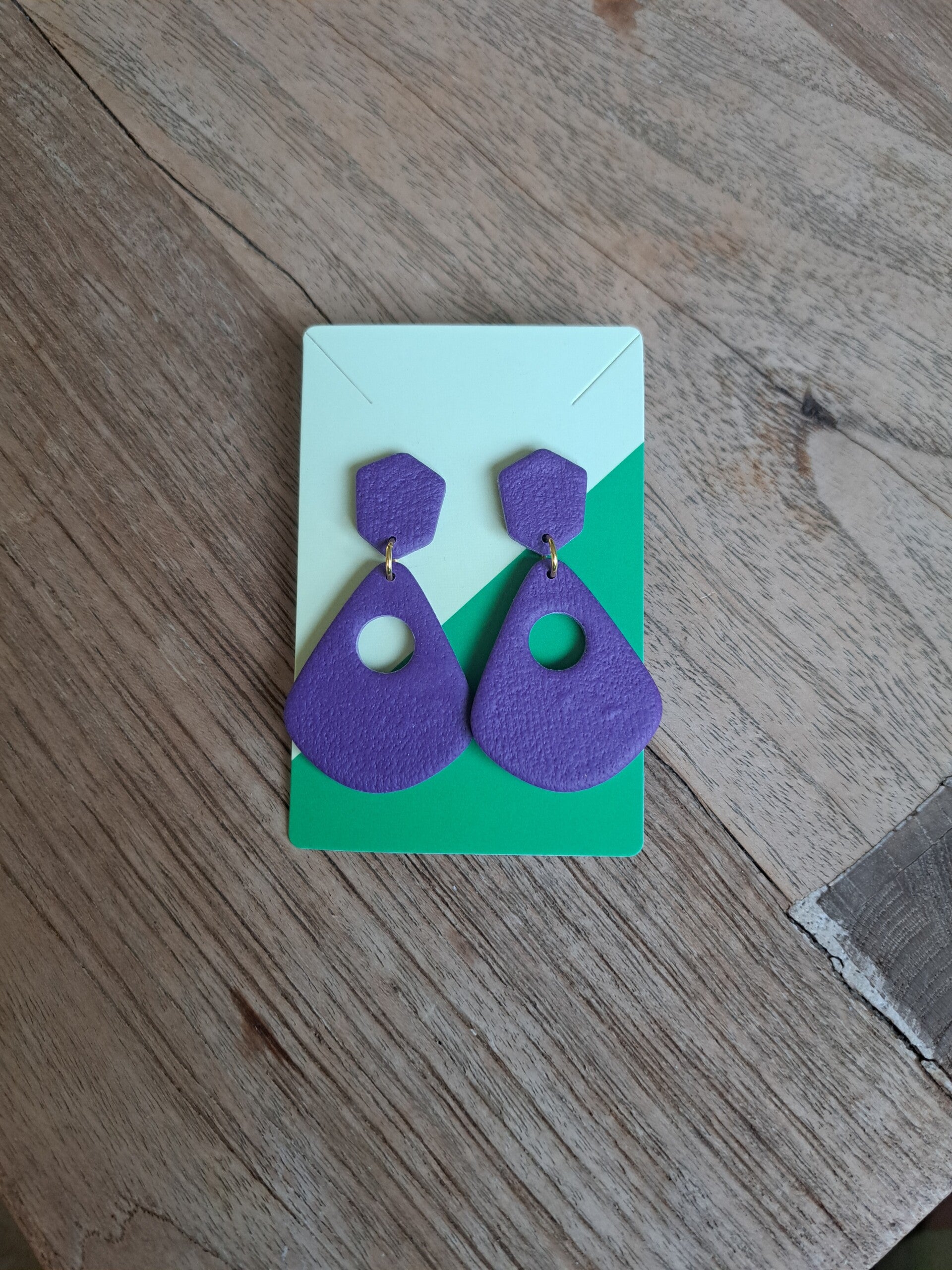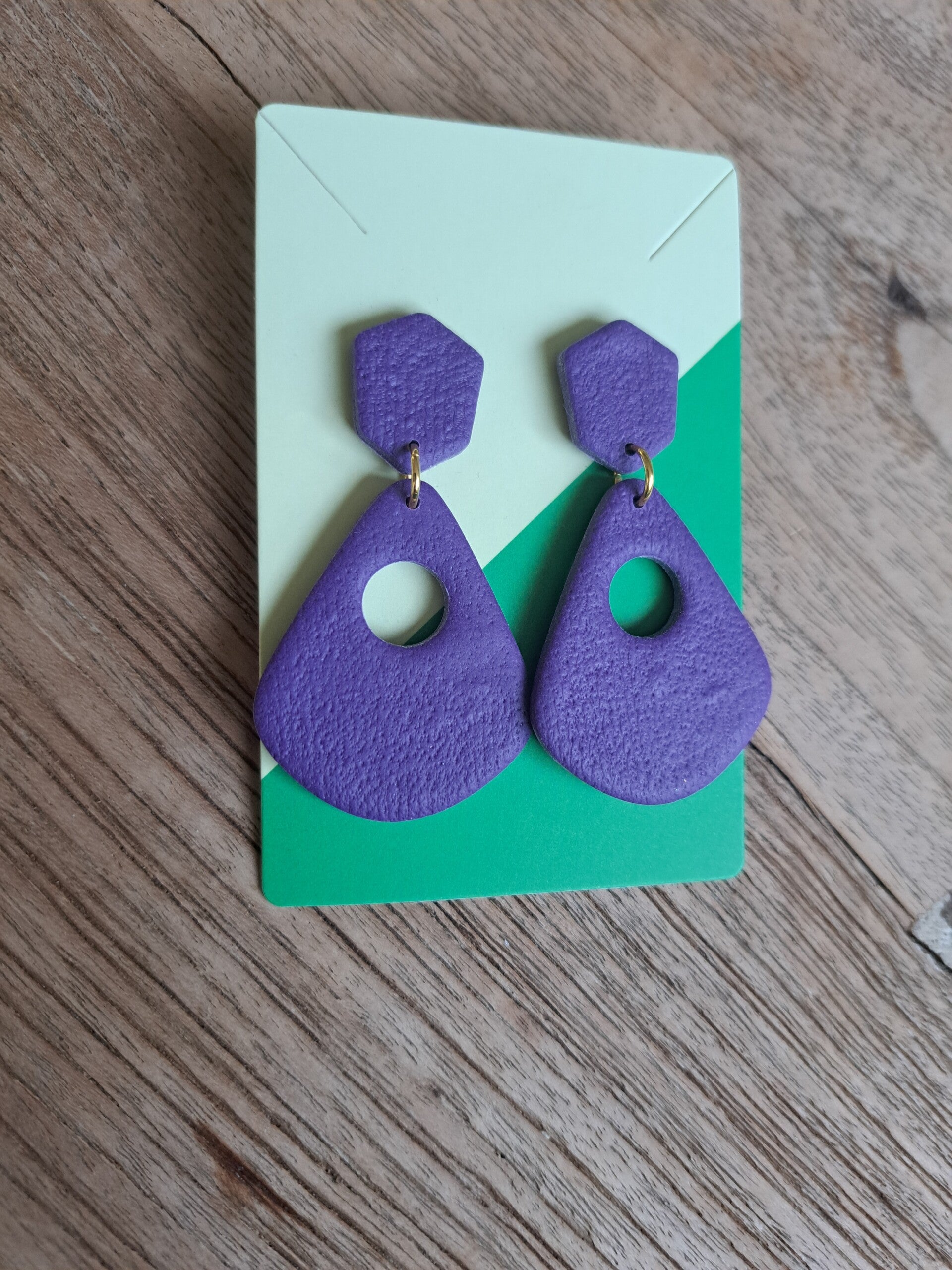 Mabel is een mooie statement oorbel in een diepe kleur paars. Met subtiel ingewerkt patroon.