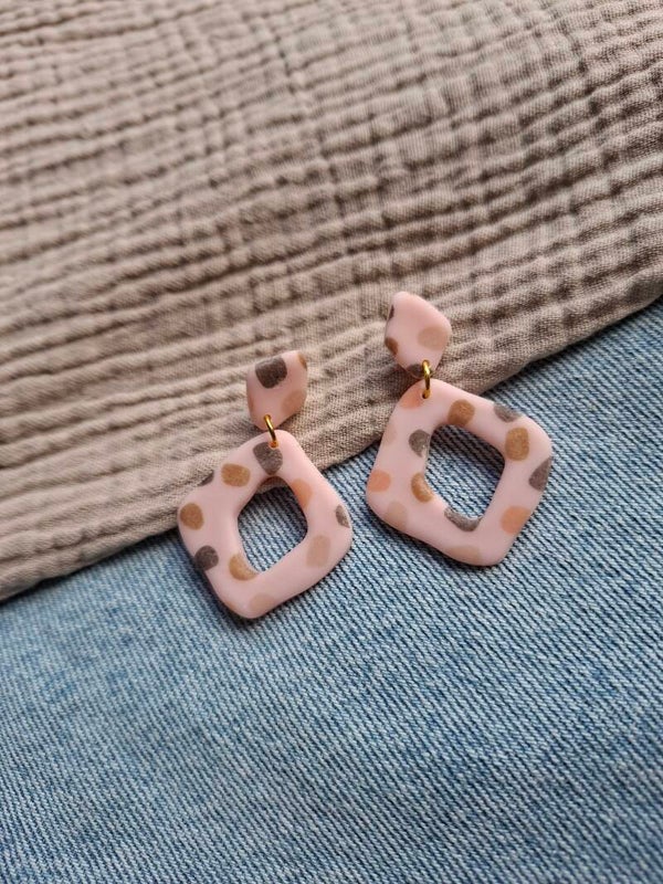 Pastel oorbel met Terrazzo look. Fijn model wat iedereen staat!