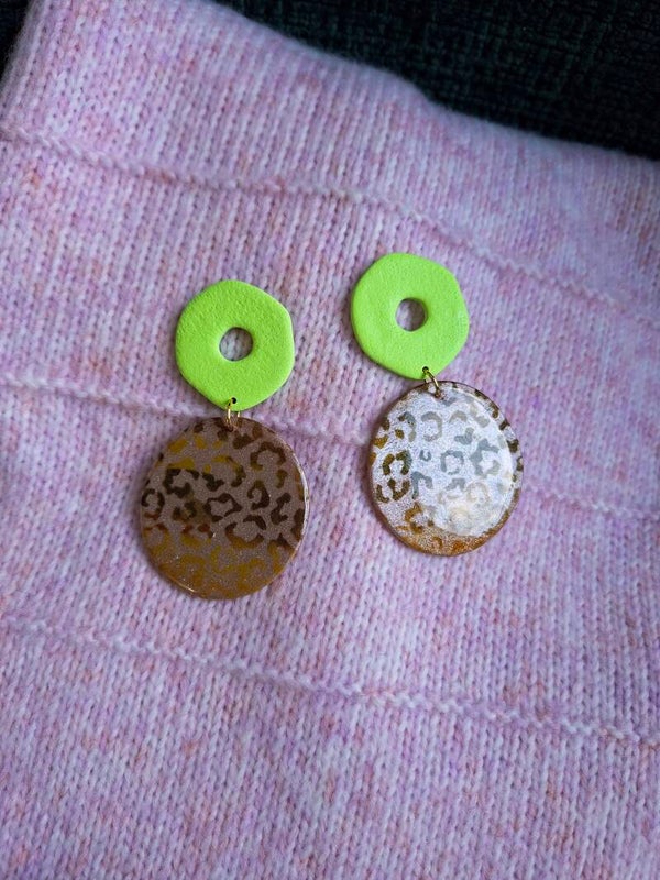 Een grote statement oorbel waar je instant happy van wordt. De Leopard is afgewerkt met glans waardoor de kleuren nog intenser zijn. Gecombineerd met een lime knopje. Mooi te combineren bij modekleur Bruin! Love love!