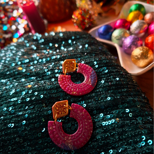 Fantastische kleuren komen hier samen in één oorbel. Het deed me direct denken aan zo'n Oosterse specerijen markt; veel kleur en een gouden knopje.