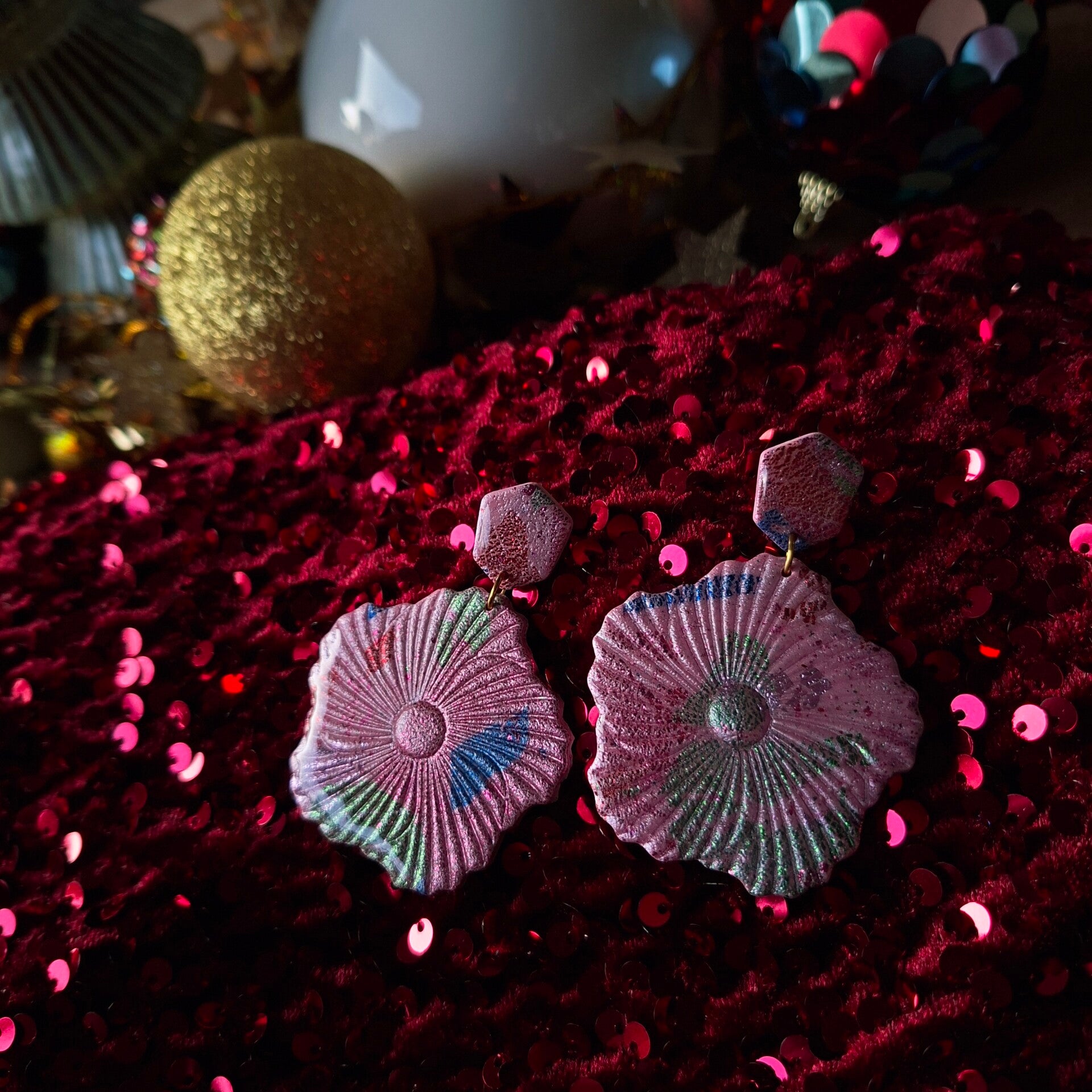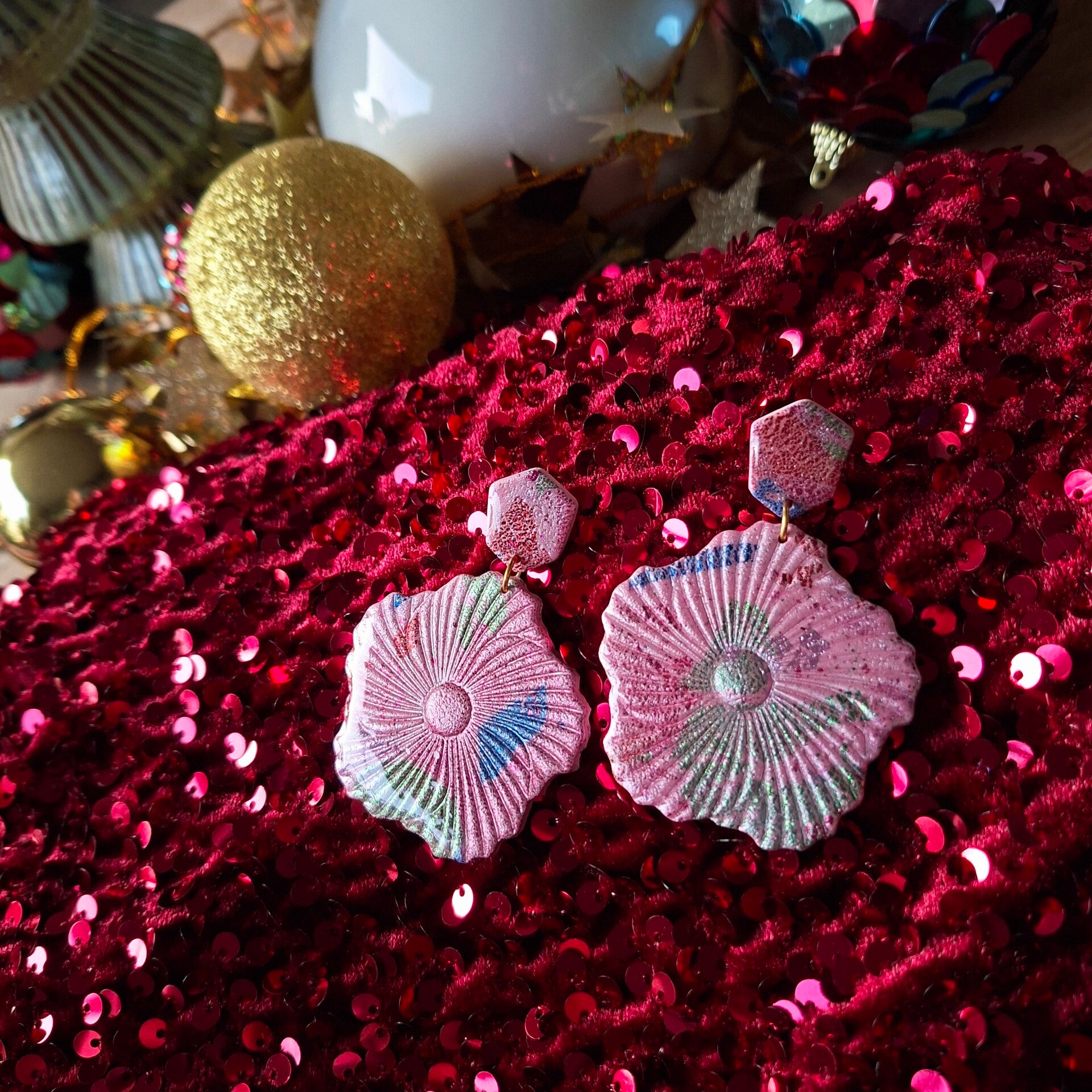 Opvallende verschijning! Op een roze ondergrond zijn blauwe, groene en rode sparkles aangebracht. Vrolijk en toch chique!
