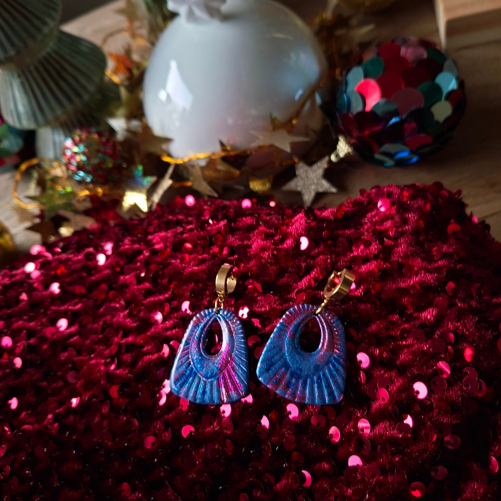 Kobaltblauw en roze samen gecombineerd en daardoor een toffe oorbel om ook door te dragen na de feestdagen.