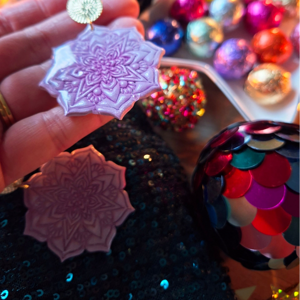 Pastelkleurige lila oorbellen in de vorm van een kerstster!
