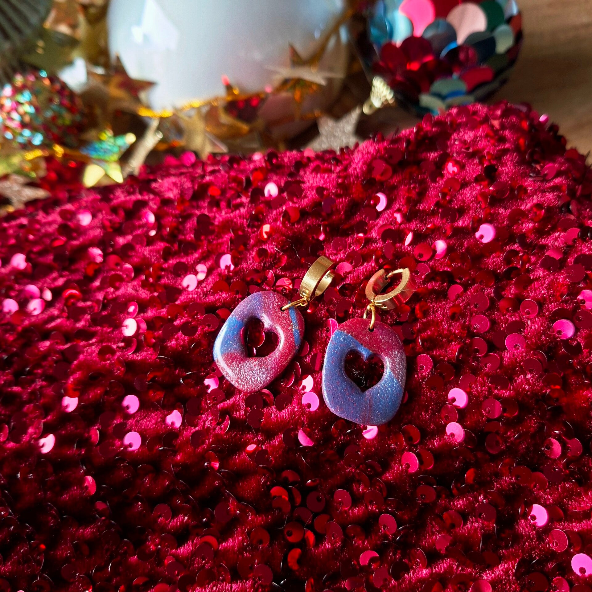 Een lief hartje in bijzondere rood, paars & blauw. Warme kleuren die je écht opfleuren. Prachtig te dragen bij bordeauxrood of blauw. Ik zeg 'wauw!'.
