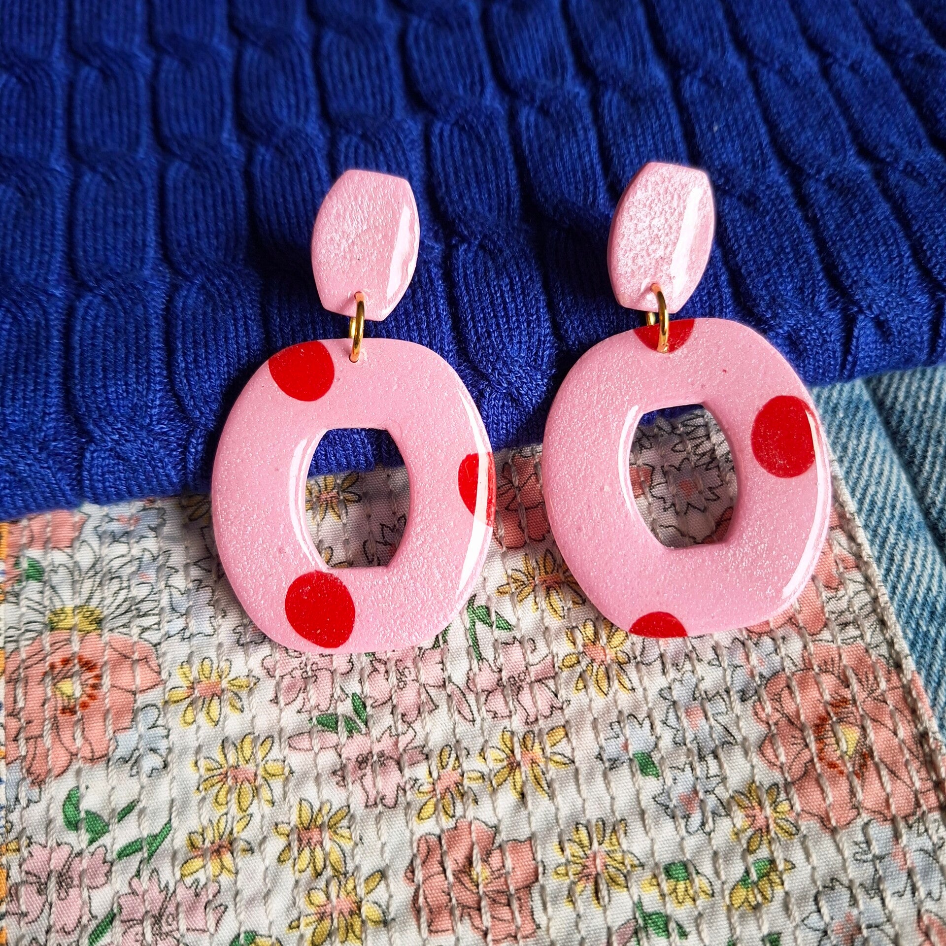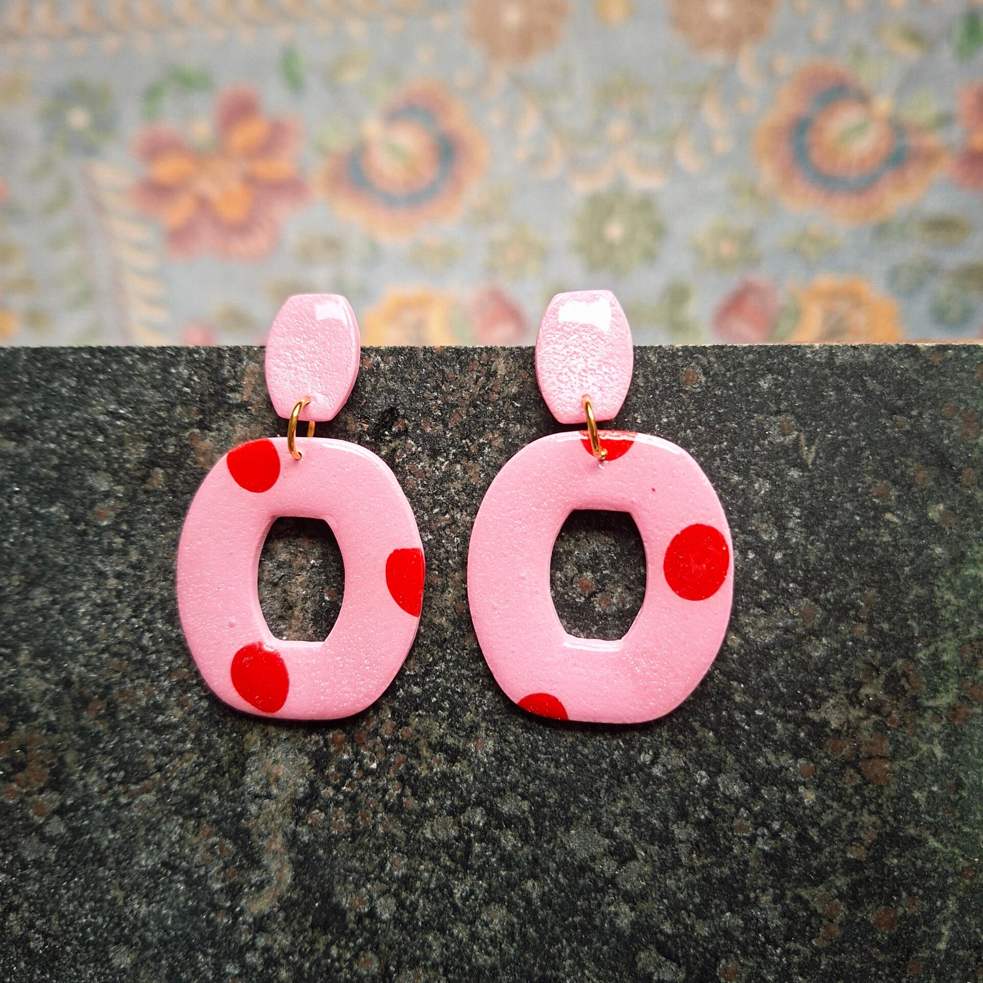 Leuk fris oorbelletje in prachtig roze met rood. Afgelakt dus shiny! Echt een oorbel voor het voorjaar!