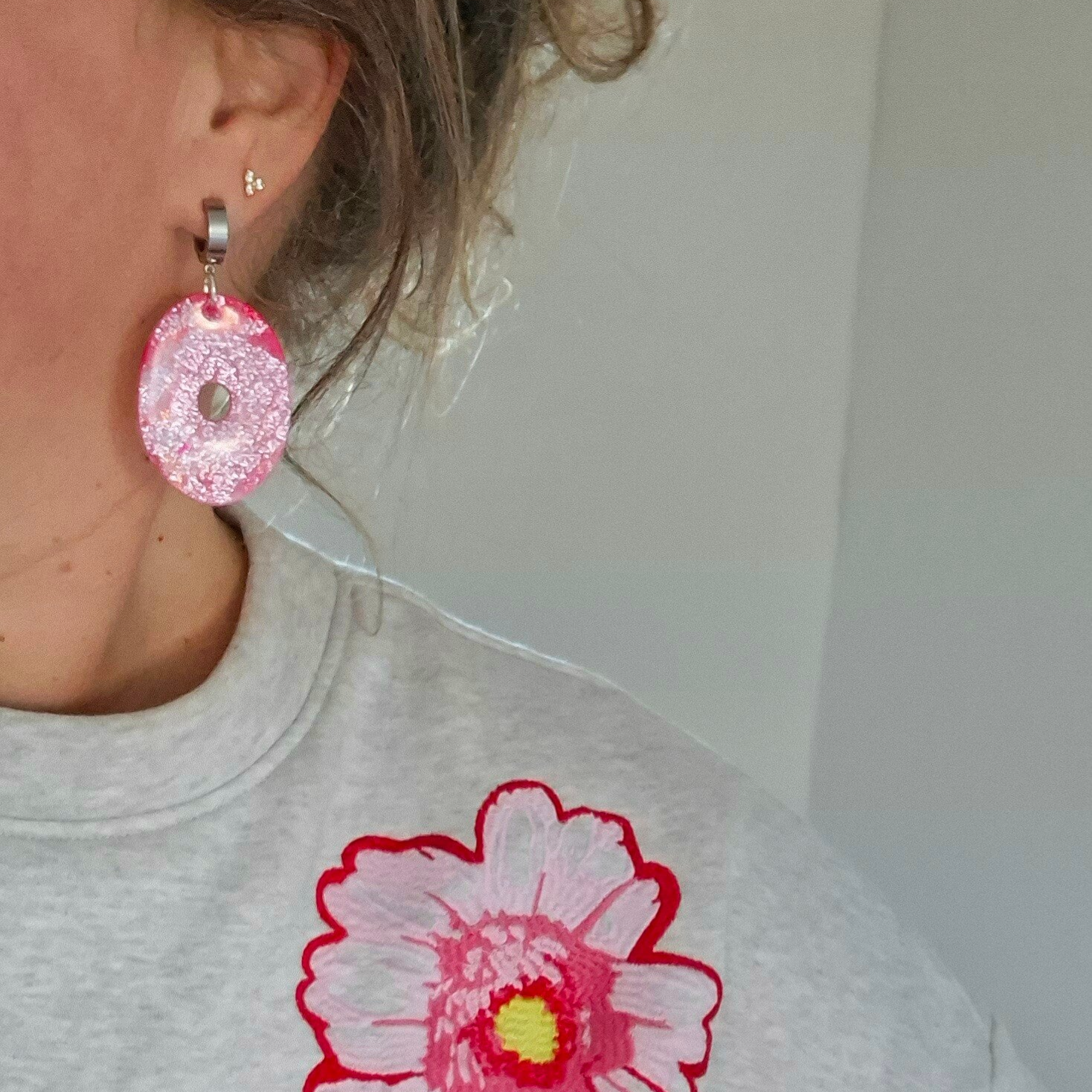 Shine shine en nog eens shine met deze grote statement oorbel. In talloze kleuren roze. Met Rvs knopje én glans!