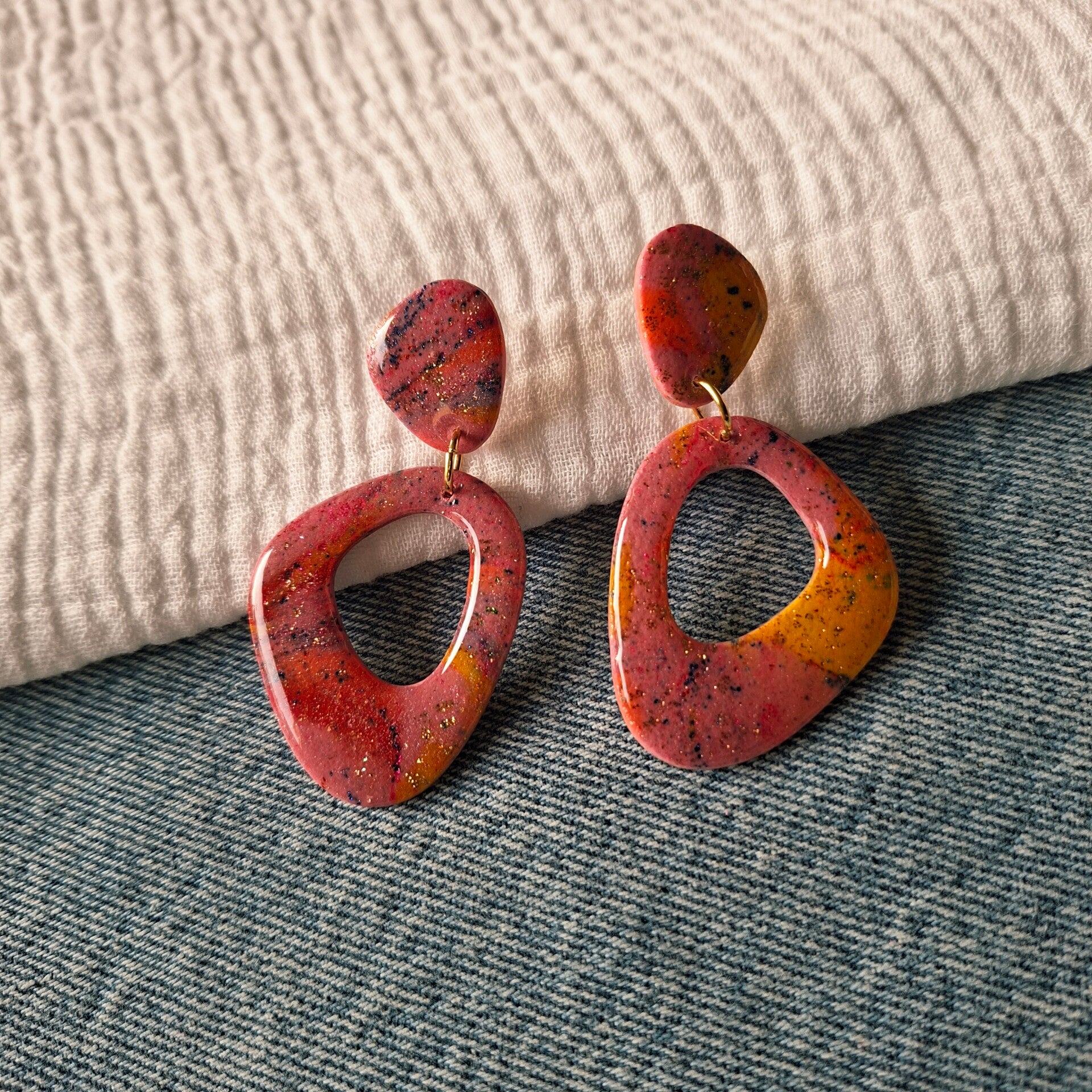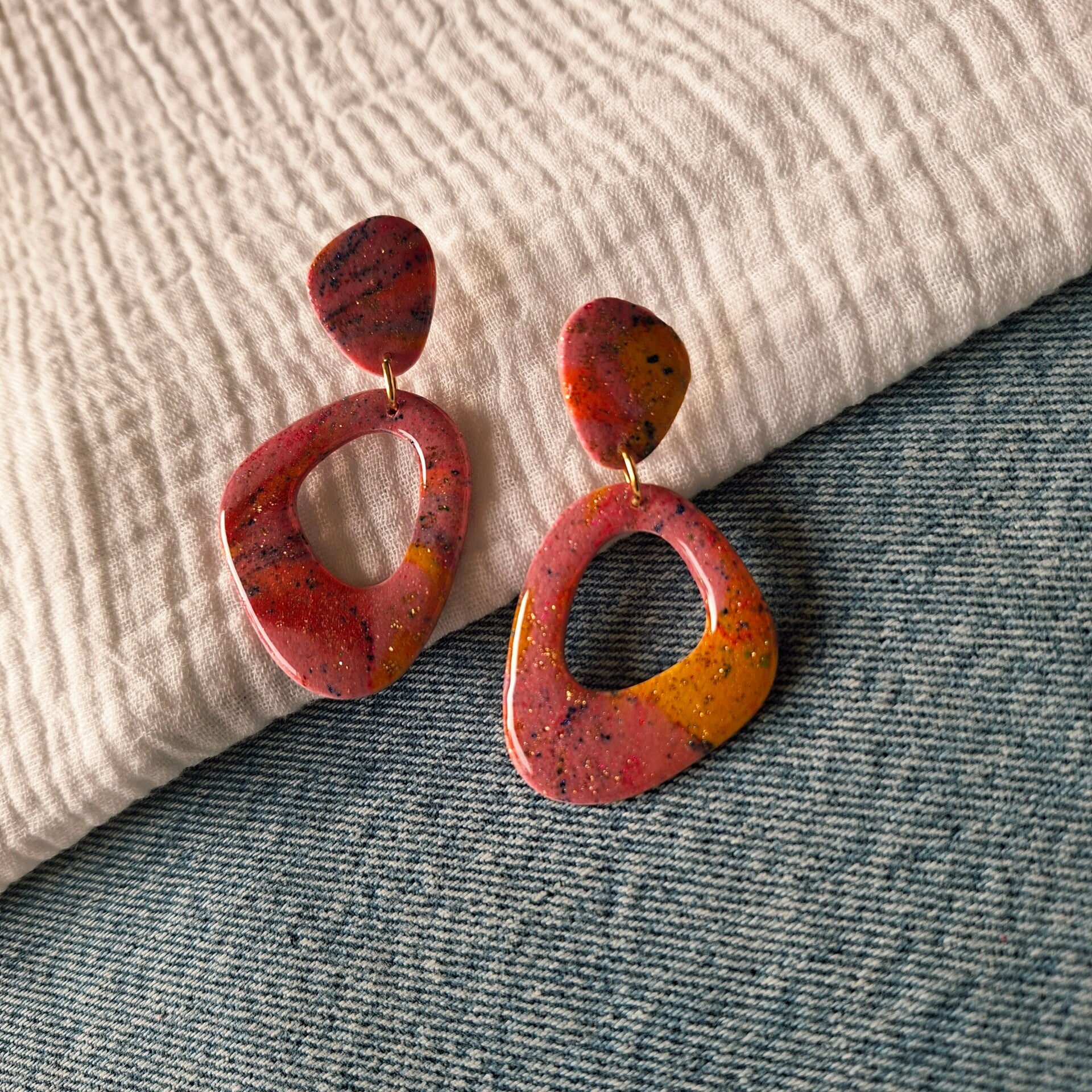 Mooi organisch gevormde oorbel in de allerfijnste voorjaarskleuren! Door de vele kleuren ook heel gemakkelijk te matchen. Stralend? Ja! Vrolijk? YES!